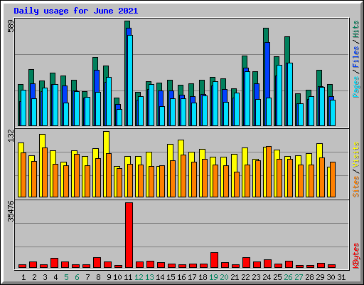 | Day | Hits | Files | Pages | Visits | Sites | KBytes | ||||||